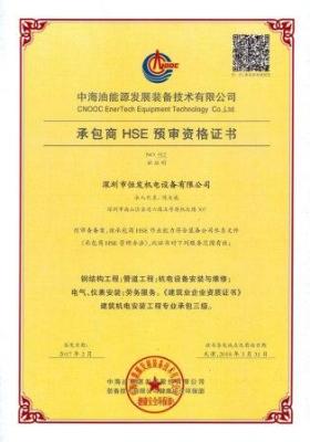 承包商HSE預(yù)審資格證書(shū)(2017年)